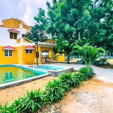 Drift into vacation mode at our Cozy Beachside Villa - just 500 meters from the shore . Your group—whether families, couples, or a boys’ gang— will feel instantly at ease in this inviting villa, featuring a spacious private swimming pool, comfy outdoor seating, and plenty of fun: badminton, carrom, frisbee, football, and more. Inside, cozy beds sleep up to 10 guests with ease, while the nearby Mayajaal and PVR Cinemas offer entertainment just minutes away. And when hunger strikes, you’ll find a range of tasty local eateries within easy reach. Whether you’re here to relax, play, or connect, this safe, fun-filled getaway has everything you need for the perfect coastal escape